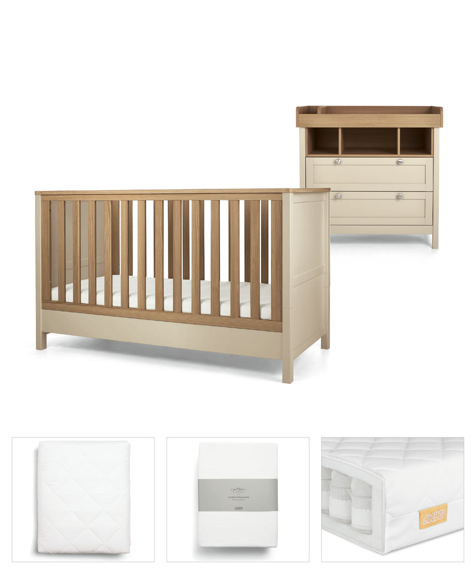Mamas & Papas Harwell Cotbed 5 Piece Set with Cotbed, Dresser Changer, Mattress, Fitted Sheets & Mattress Protector - Cashmere